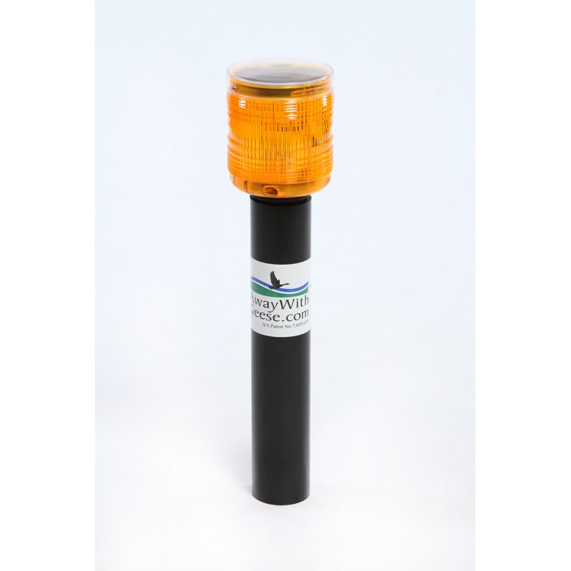 Away With Geese™ utilizes light to disrupt the sleep of geese, causing them to feel insecure and to seek other habitat. Each unit features amber, solar powered light that flashes every two seconds and rotates 360°, every night, all year round. The unit is effective within a 75-yard radius.